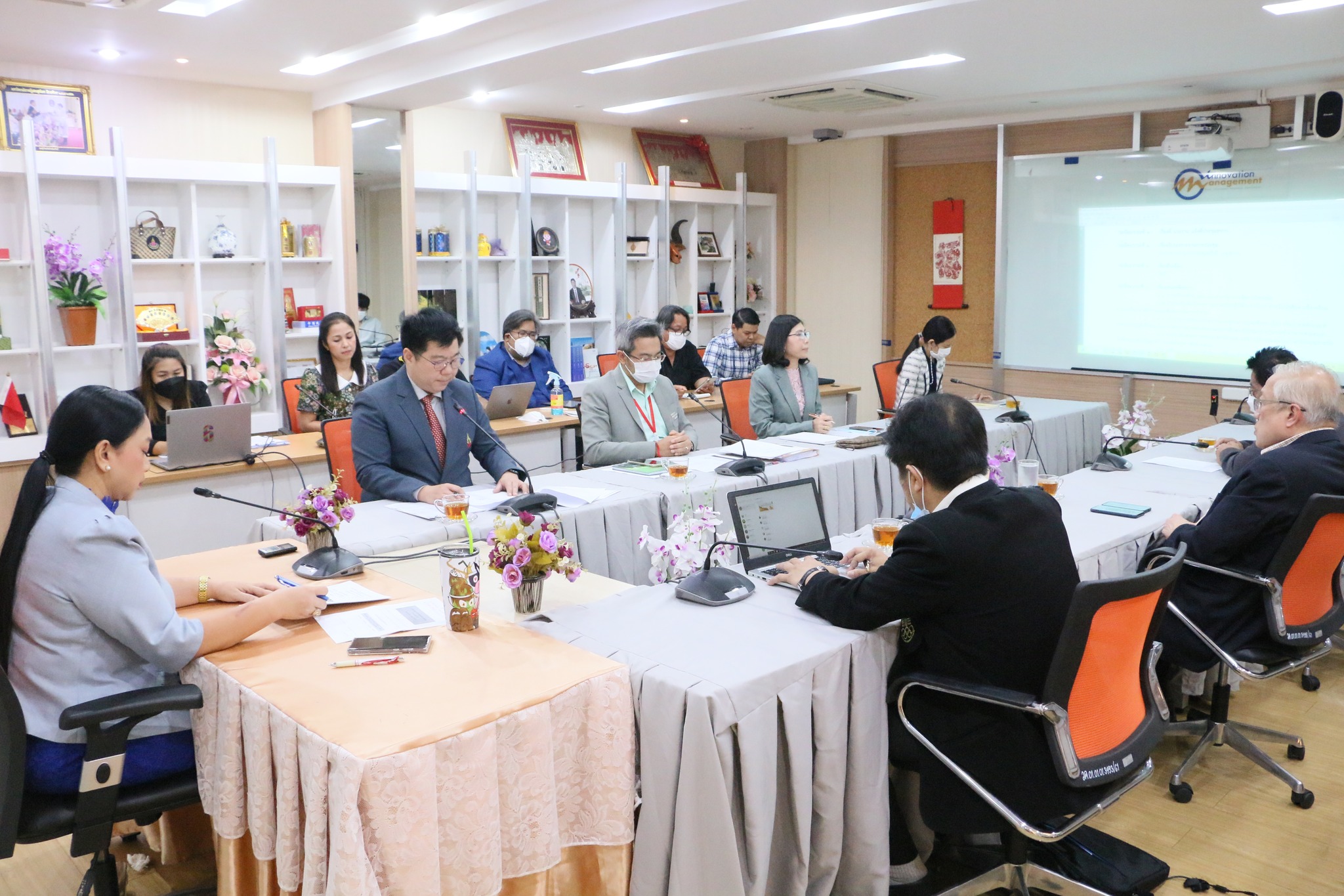 วันพฤหัสบดี ที่ 2 กุมภาพันธ์ 2566 เวลา 10.00 น. ฝ่ายบริหารและแผนงานวิทยาลัยนวัตกรรมและการจัดการ นำโดย ผู้ช่วยศาสตราจารย์ ดร.ชุมพล รอดแจ่ม รองคณบดีฝ่ายบริหารและแผนงาน จัดประชุมคณะกรรมการบริหารวิทยาลัยนวัตกรรมและการจัดการ ครั้งที่ 2/2566 เพื่อขับเคลื่อนการดำเนินงานของวิทยาลัยให้มีประสิทธิภาพ โดยมี ผู้ช่วยศาสตราจารย์ ดร.ชลภัสสรณ์ สิทธิวรงค์ชัย คณบดีวิทยาลัยนวัตกรรมและการจัดการ เป็นประธานการประชุม ณ ห้องประชุมใหญ่วิทยาลัยนวัตกรรมและการจัดการ ชั้น2 อาคารเหมวดีพิทักษ์ (อาคาร37)