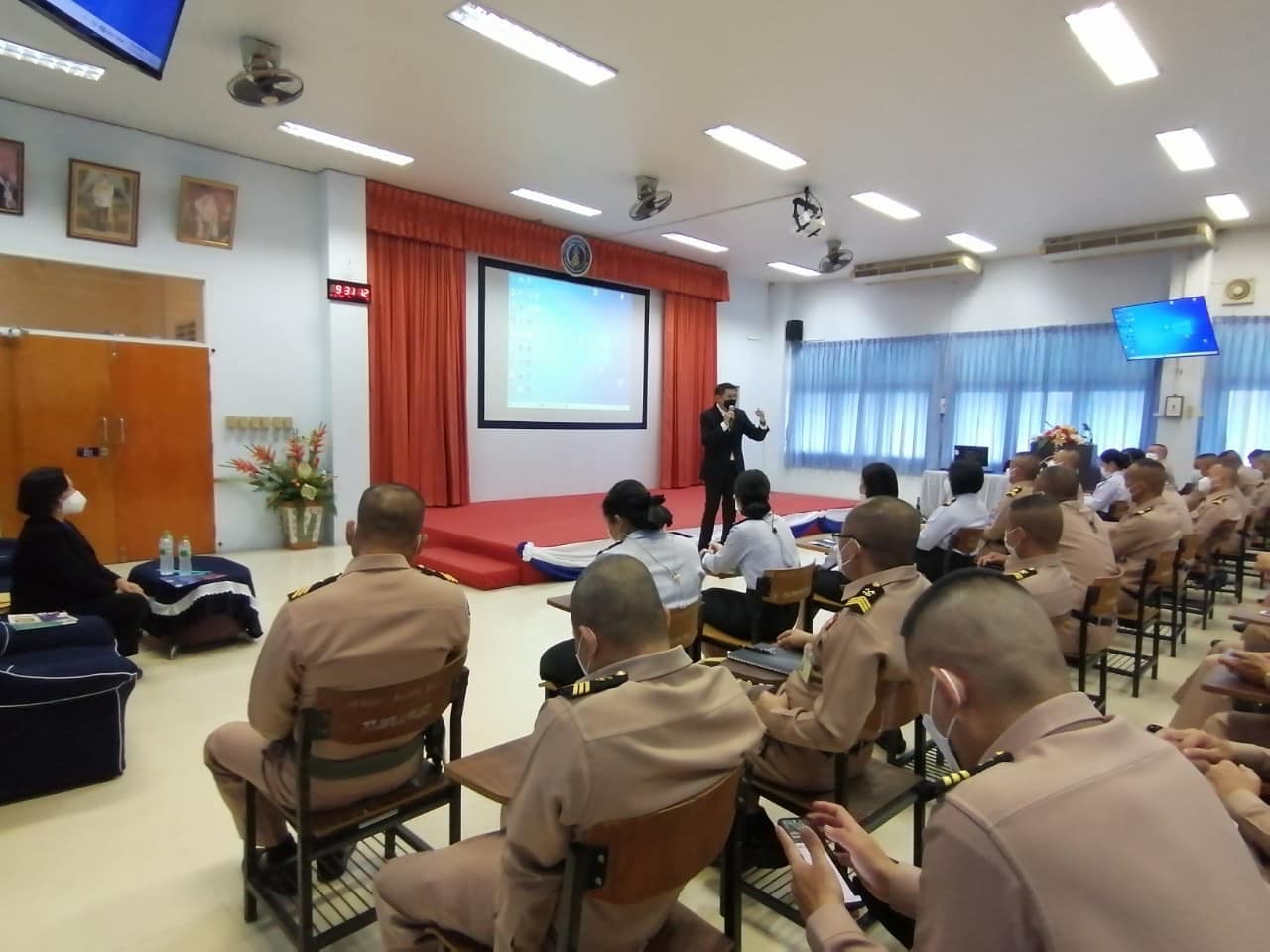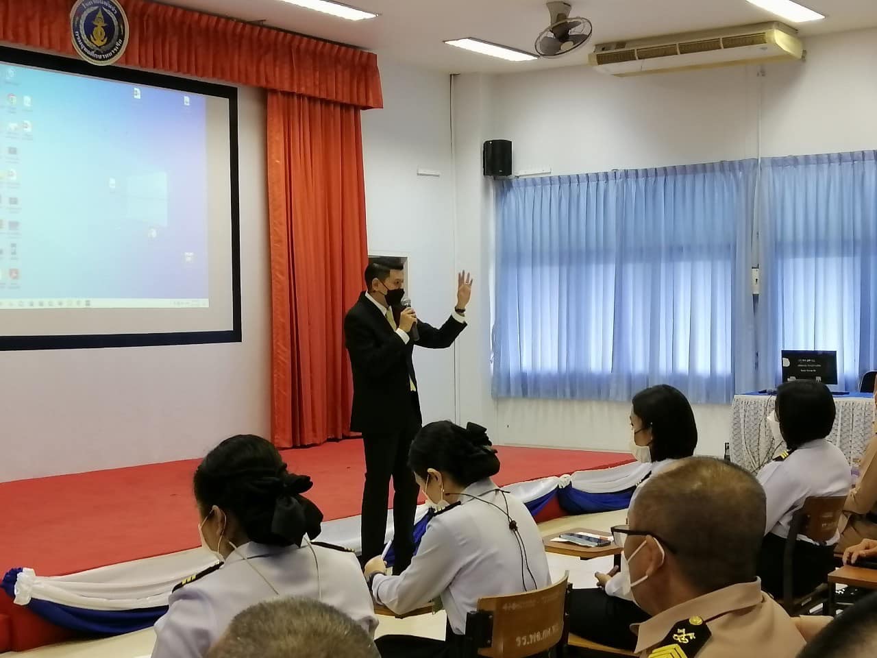 วันจันทร์ที่ 17 ตุลาคม 2565 ดร.ปรรณวัฒน์ ชูวิเชียร อาจารย์ประจำหลักสูตรศิลปศาสตรบัณฑิต สาขาวิชานวัตกรรมการจัดการความมั่นคง วิทยาลัยนวัตกรรมและการจัดการ มหาวิทยาลัยราชภัฏสวนสุนันทา ได้เข้าประชาสัมพันธ์หลักสูตรให้กับ นักศึกษาโรงเรียนพันจ่า กรมยุทธศึกษาทหารเรือ โดยทางนักศึกษาโรงเรียนพันจ่า กรมยุทธศึกษาทหารเรือ ได้ให้การต้อนรับอย่างอบอุ่น และให้ความสนใจในการเข้าศึกษาต่อของกำลังพลในสาขาวิชานวัตกรรมการจัดการความมั่นคง
