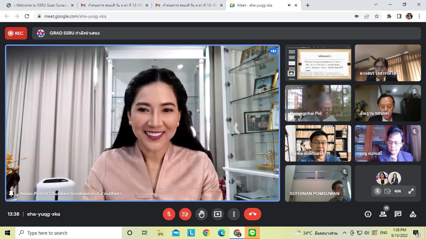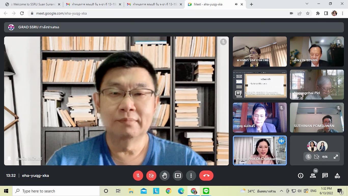 วันจันทร์ ที่ 13 มิถุนายน พุทธศักราช 2565 เวลา 13.30 น. รองศาสตราจารย์ดร.บัณฑิต ผังนิรันดร์ คณบดีวิทยาลัยนวัตกรรมและการจัดการ เข้าร่วมประชุมคณะกรรมการอำนวยการบัณฑิตวิทยาลัย มหาวิทยาลัยราชภัฏสวนสุนันทา ครั้งที่ 6/2565 โดยมี รองศาสตราจารย์ ดร.ชุติกาญจน์ ศรีวิบูลย์ อธิการบดีมหาวิทยาลัยราชภัฏสวนสุนันทา เป็นประธานการประชุม ผ่านระบบออนไลน์ Google Meet