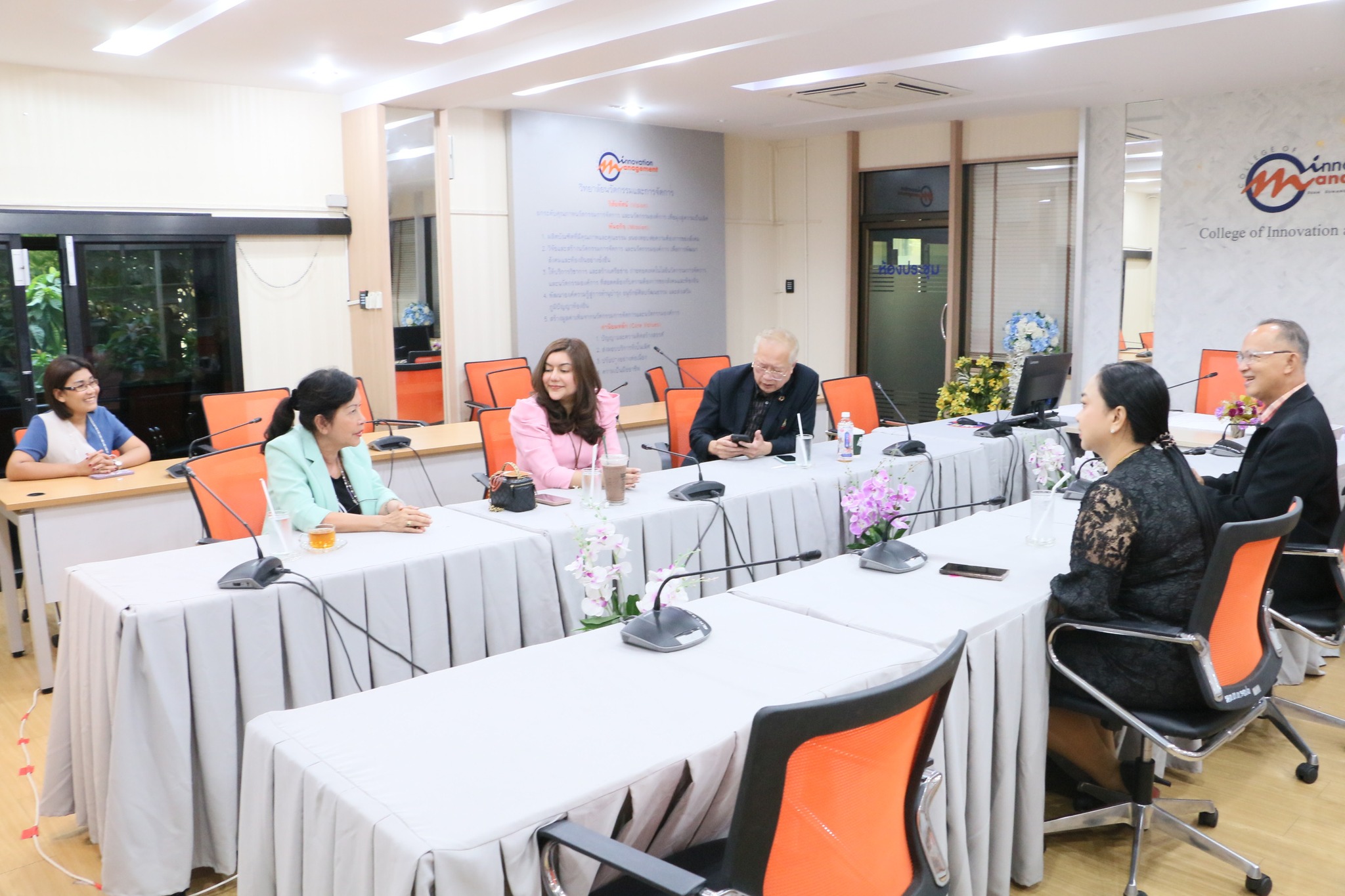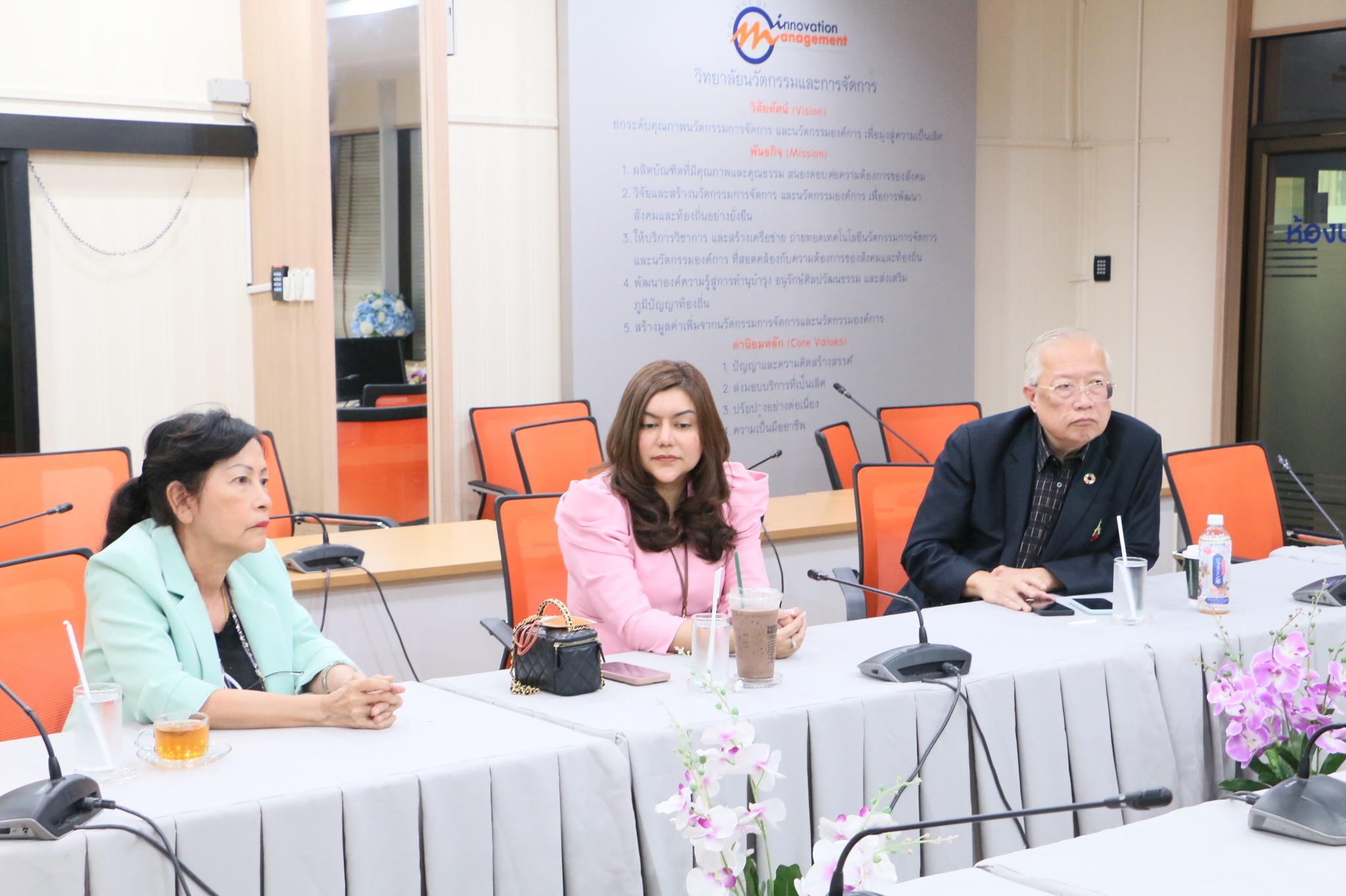 ผู้ช่วยศาสตราจารย์ ดร.ชลภัสสรณ์ สิทธิวรงค์ชัย คณบดีวิทยาลัยนวัตกรรมและการจัดการ พร้อมด้วย ผู้ช่วยศาสตราจารย์ ดร. ธนพล ก่อฐานะ และอาจารย์ ร่วมประชุมหารือแนวทางการรับสมัครนักศึกษาในระดับปริญญาตรี ปริญญาโท และปริญญาเอก ณ ห้องประชุมใหญ่วิทยาลัยนวัตกรรมและการจัดการ ชั้น2 อาคารเหมวดีพิทักษ์ (อาคาร37)