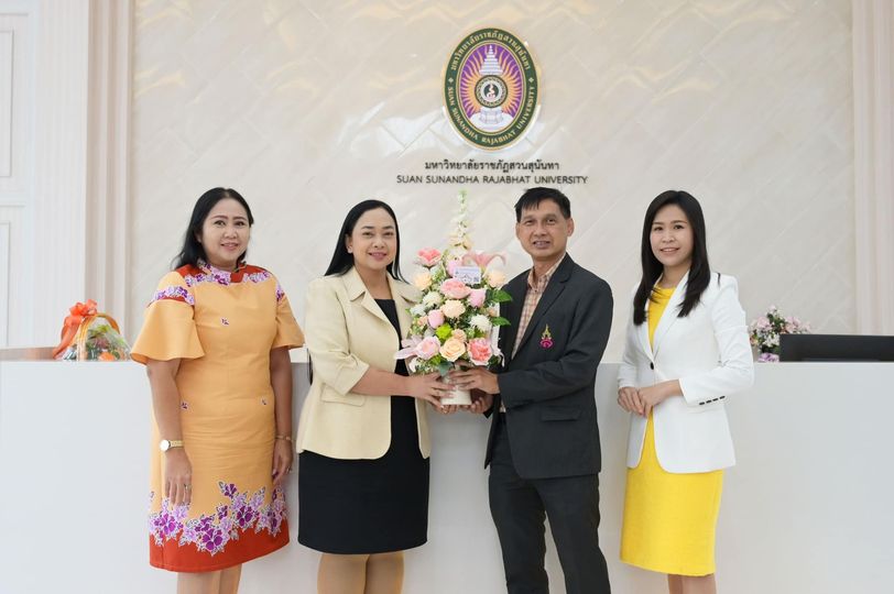 ผู้ช่วยศาสตราจารย์ ดร.ชลภัสสรณ์ สิทธิวรงค์ชัย คณบดีวิทยาลัยนวัตกรรมและการจัดการ พร้อมด้วยรองคณบดี และหัวหน้าสำนักงาน มอบดอกไม้แสดงความยินดี กับผู้ช่วยศาสตราจารย์ ดร.ชนมภัทร โตระสะ เนื่องในโอกาสได้รับแต่งตั้งให้ดำรงตำแหน่งคณบดีคณะเทคโนโลยีอุตสาหกรรม มหาวิทยาลัยราชภัฏสวนสุนันทา ณ ห้องรับรอง สำนักงานอธิการบดี มหาวิทยาลัยราชภัฏสวนสุนันทา
