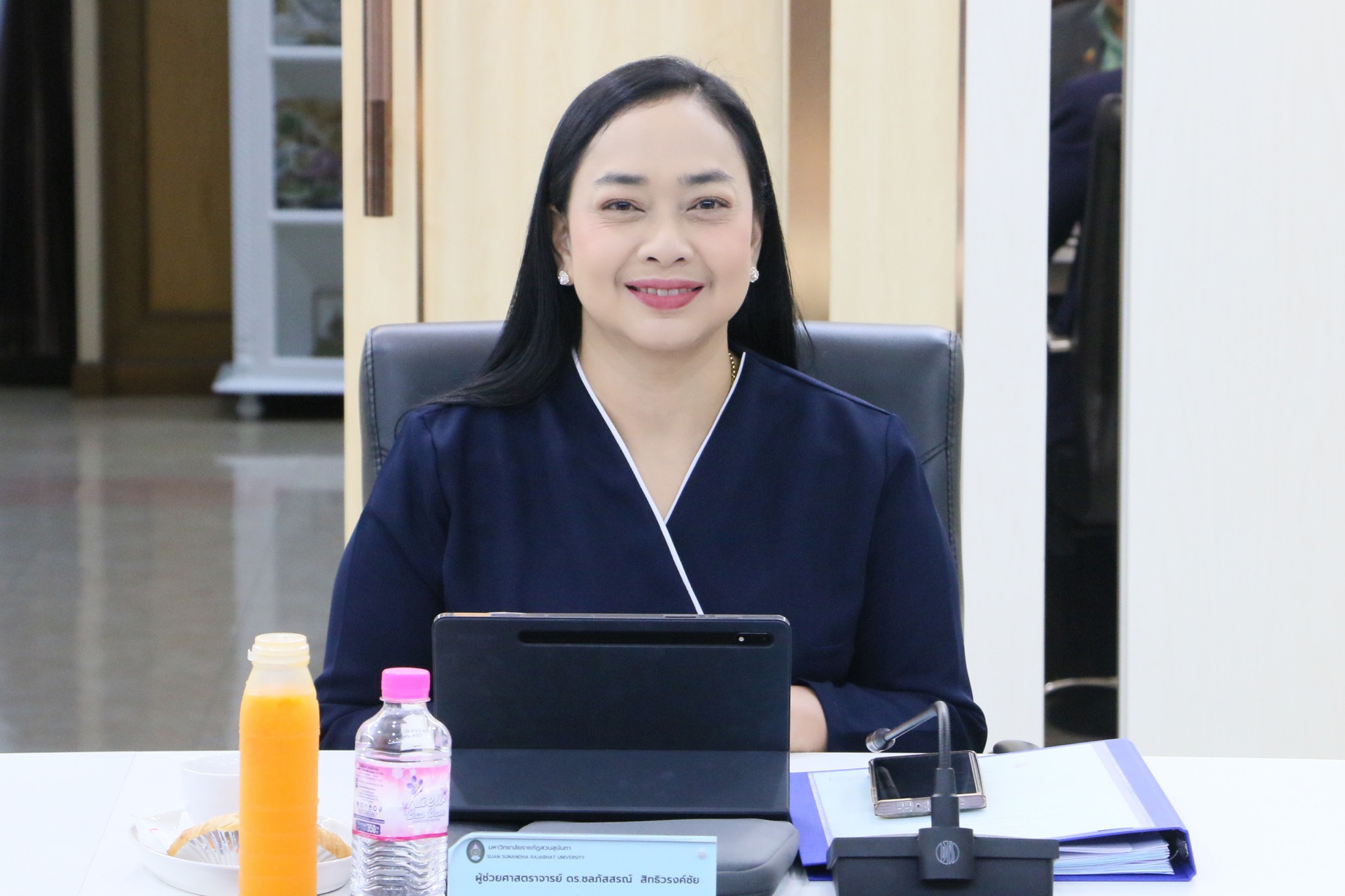 ผู้ช่วยศาสตราจารย์ ดร.ชลภัสสรณ์ สิทธิวรงค์ชัย คณบดีวิทยาลัยนวัตกรรมและการจัดการ เข้าร่วมการประชุมคณะกรรมการบริหารกองทุนพัฒนาบุคลากร ครั้งที่ 12/2566 โดยมี รองศาสตราจารย์ ดร.ชุติกาญจน์ ศรีวิบูลย์ อธิการบดีมหาวิทยาลัยราชภัฏสวนสุนันทา เป็นประธานการประชุม ในวันพฤหัสบดีที่ 21 ธันวาคม พ.ศ. 2566 เวลา 09.00 น. ณ ห้องประชุมสำนักงานอธิการบดี อาคาร 32 ชั้น 5