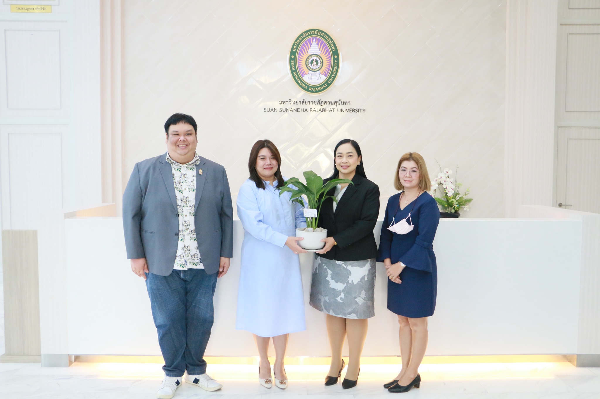 Asst. Prof. Kanyapat Utapao, Dean of the College of Communication Arts, administrators, lecturers, and Asst. Prof. Dr.Akapong Inkuer, Dean of the Faculty of Fine and Applied Arts, as well as teachers and staff Congratulations to Asst. Prof. Dr. Cholpassorn Sitthiwarongchai, on the occasion of his appointment as Acting Dean of Suan Sunandha Rajabhat University's College of Innovation and Management.
