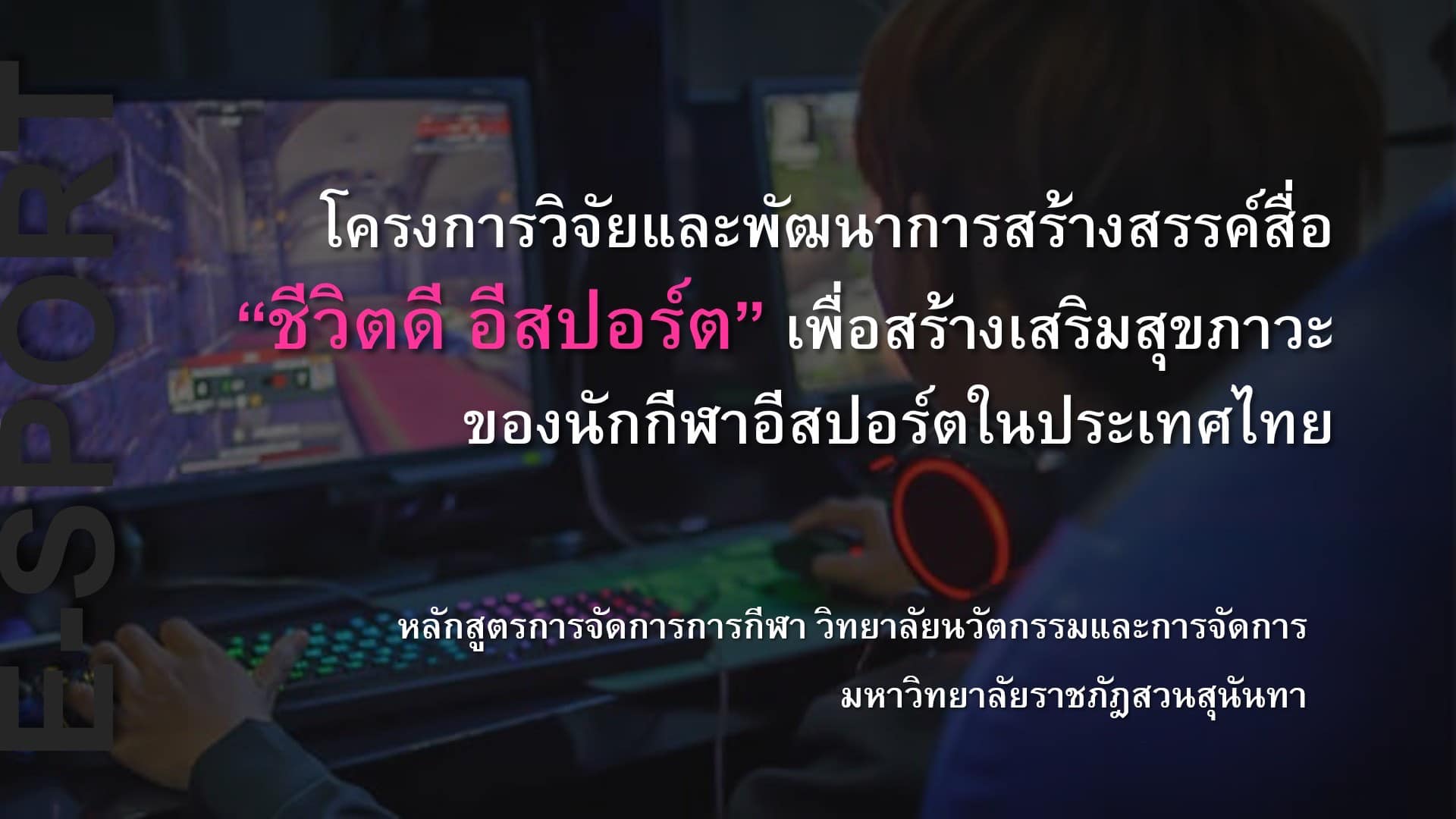 "โครงการวิจัยและพัฒนาการสร้างสรรค์สื่อ “ชีวิตดี อีสปอร์ต” เพื่อสร้างเสริมสุขภาวะของนักกีฬาอีสปอร์ตในประเทศไทย"