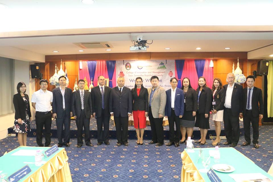 ผู้ช่วยศาสตราจารย์ ดร.ชุติกาญจน์ ศรีวิบูลย์ รองอธิการบดีฝ่ายทรัพย์สินและรายได้ พร้อมทั้งผู้บริหาร และคณาจารย์วิทยาลัยนวัตกรรมและการจัดการ นำโดย ผู้ช่วยศาสตราจารย์ ดร.บัณฑิต ผังนิรันดร์ คณบดี ผู้ช่วยศาสตราจารย์ปรเมษฐ์ แสงอ่อน รองคณบดีฝ่ายบริหาร อาจารย์ ดร.จิราภรณ์ บุญยิ่ง รองคณบดีฝ่ายแผนงานและประกันคุณภาพ อาจารย์ชลภัสสรณ์ สิทธิวรงค์ชัย รองคณบดีฝ่ายวิจัยและบริการวิชาการ ผู้ช่วยศาสตราจารย์ ดร.วิจิตรา ศรีสอน ประธานหลักสูตรรัฐศาสตรมหาบัณฑิต พลตำรวจโท ดร.สัณฐาน ชยนนท์ ประธานหลักสูตรรัฐศาสตรดุษฎีบัณฑิต ดร.ธนพล ก่อฐานะ ประธานหลักสูตรดุษฎีบัณฑิต ดร.สุพัตรา ปราณี หัวหน้าสาขาการจัดการคุณภาพ ร่วมต้อนรับผู้บริหารจากมหาวิทยาลัยอันชุน มณฑลกุ้ยโจว สาธารณรัฐประชาชนจีน นำโดย Professor Linghu Rongtao รองอธิการบดี และคณะ ซึ่งเดินทางเยี่ยมวิทยาลัยนวัตกรรมและการจัดการ ในวันพุธที่ 20 มิถุนายน 2561 โดยมีวัตถุประสงค์เพื่อร่วมกันหาแนวทางการทำบันทึกข้อตกลงความร่วมมือทางวิชาการระหว่างมหาวิทยาลัย และเตรียมความพร้อมเพื่อรองรับอาจารย์จากมหาวิทยาลัยอันชุนเข้ามาศึกษาต่อในระดับดุษฎีบัณฑิตกับวิทยาลัยนวัตกรรมและการจัดการ ในสาขาวิชานวัตกรรมการจัดการ ในภาคเรียนที่ 1/2561 นี้