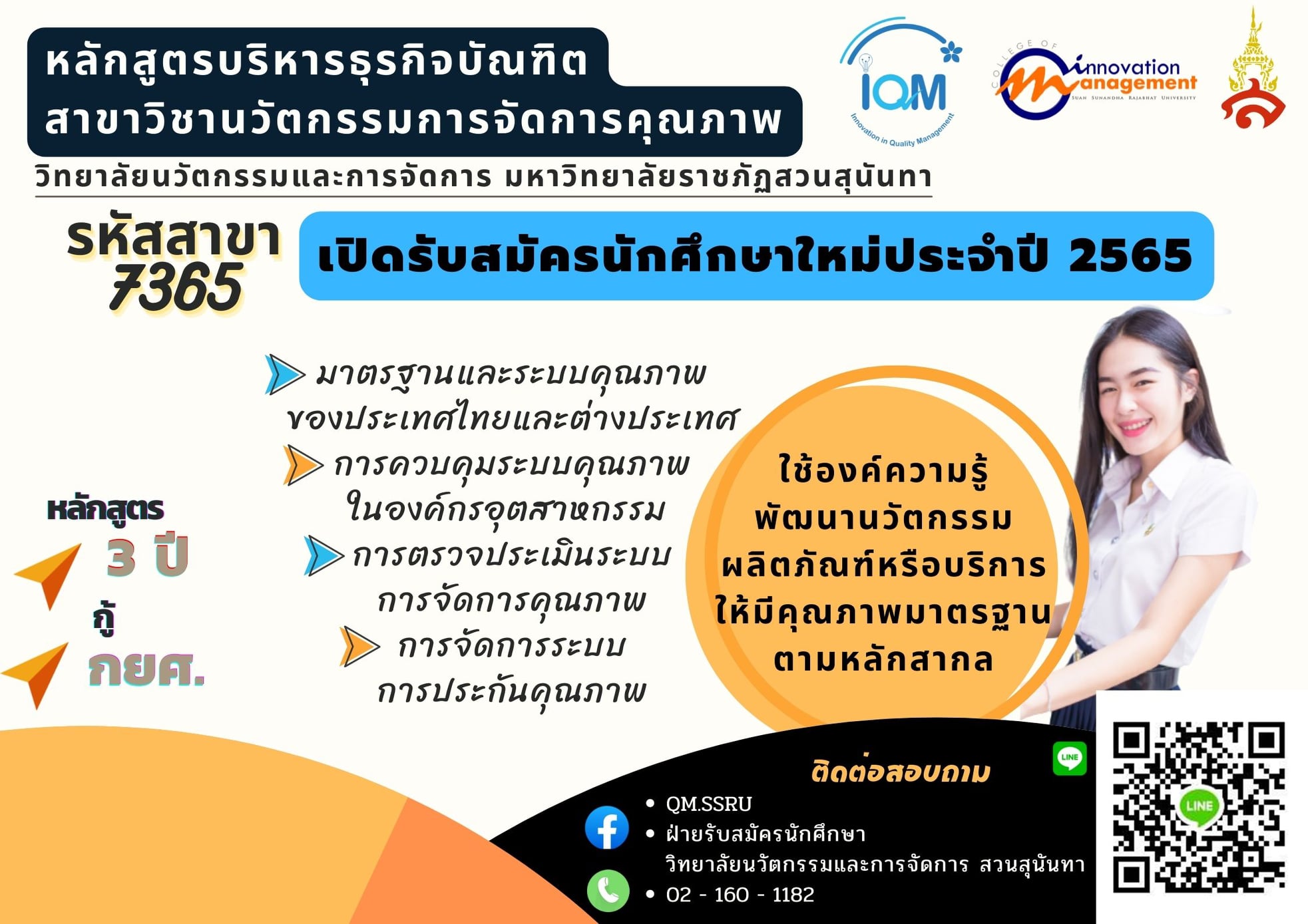 > สาขาวิชาการจัดการคุณภาพ เปิดรับสมัครนักศึกษาใหม่ ประจำปี 2565