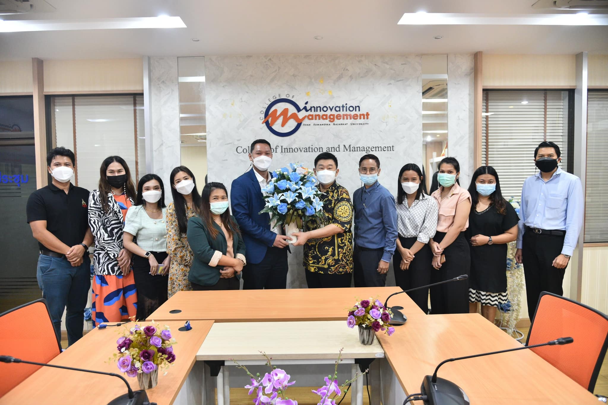 วันพฤหัสบดี ที่ 30 กันยายน 2564 รองศาสตราจารย์ ดร.บัณฑิต ผังนิรันดร์ คณบดี วิทยาลัยนวัตกรรมและการจัดการ นำทีมบุคลากรร่วมมอบดอกไม้แสดงความยินดี กับผู้ช่วยศาสตราจารย์ ดร.ภัทรวิทย์ อยู่วัฒนะ รองคณบดีฝ่ายกิจการนักศึกษา วิทยาลัยนวัตกรรมและการจัดการ ในโอกาสที่ได้รับตำแหน่งใหม่ ในตำแหน่ง ผู้อำนวยการศูนย์การศึกษาจังหวัดอุดรธานี มหาวิทยาลัยราชภัฏสวนสุนันทา