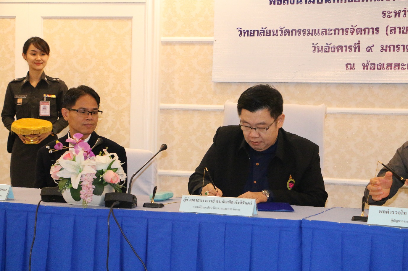 วันที่ 9 มกราคม 2561 วิทยาลัยนวัตกรรมและการจัดการ นำโดย ผู้ช่วยศาสตรจารย์ ดร.บัณฑิต ผังนิรันดร์ คณบดีวิทยาลัยนวัตกรรมและการจัดการ มหาวิทยาลัยราชภัฏสวนสุนันทา และคณะ ร่วมกับตำรวจภูธรภาค 7 นำโดย พลตำรวจโทกิตติพงษ์ เงามุข ผู้บัญชาการตำรวจภาค 7 และคณะ ได้เข้าร่วมทำพิธีลงนามบันทึกข้อตกลงว่าด้วยความร่วมมือทางวิชาการระหว่างวิทยาลัยนวัตกรรมและการจัดการ สาขารัฐศาสตร์ กับ ตำรวจภูธรภาค 7 ณ ห้องเสสะเวช ตำรวจภูธรภาค 7