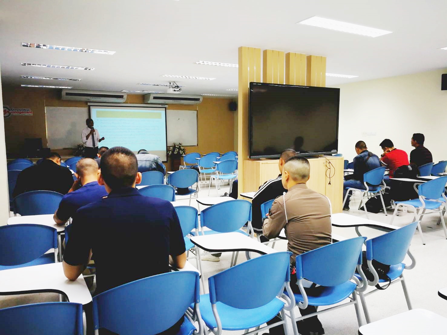 บรรยากาศการเรียนการสอนในสัปดาห์ที่ 7 ของนักศึกษาสาขาวิชารัฐศาสตร์ (ภาคพิเศษ) โครงการความร่วมมือตำรวจฯ รุ่นที่ 3 ในรายวิชา จริยธรรมและธรรมมาภิบาลทางการเมือง ดำเนินการสอนโดย อาจารย์ ดร.นิเวศน์ เขียววิชัย