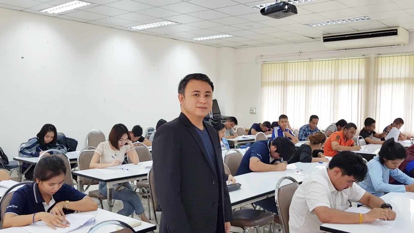 บรรยากาศการสอบวัดความรู้เรื่องการปกครองเปรียบเทียบของนักศึกษาสาขาวิชารัฐศาสตร์ (ภาคพิเศษ) ศูนย์การศึกษาระนอง วิทยาลัยนวัตกรรมและการจัดการ มหาวิทยาลัยราชภัฎสวนสุนันทา ดำเนินการสอนและควบคุมการสอบโดย อาจารย์ ดร. สืบสวัสดิ์ วุฒิวรดิษฐ์