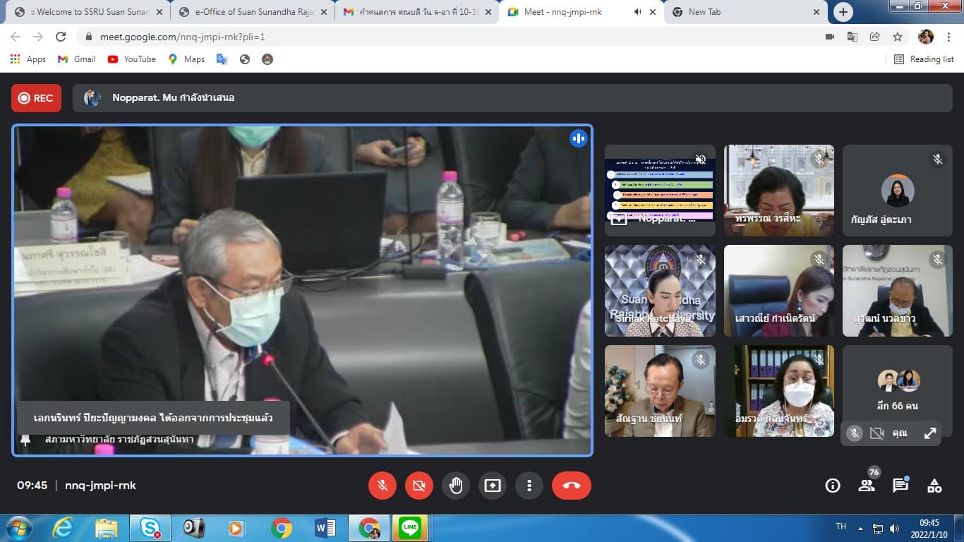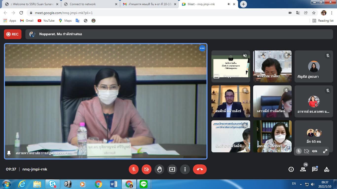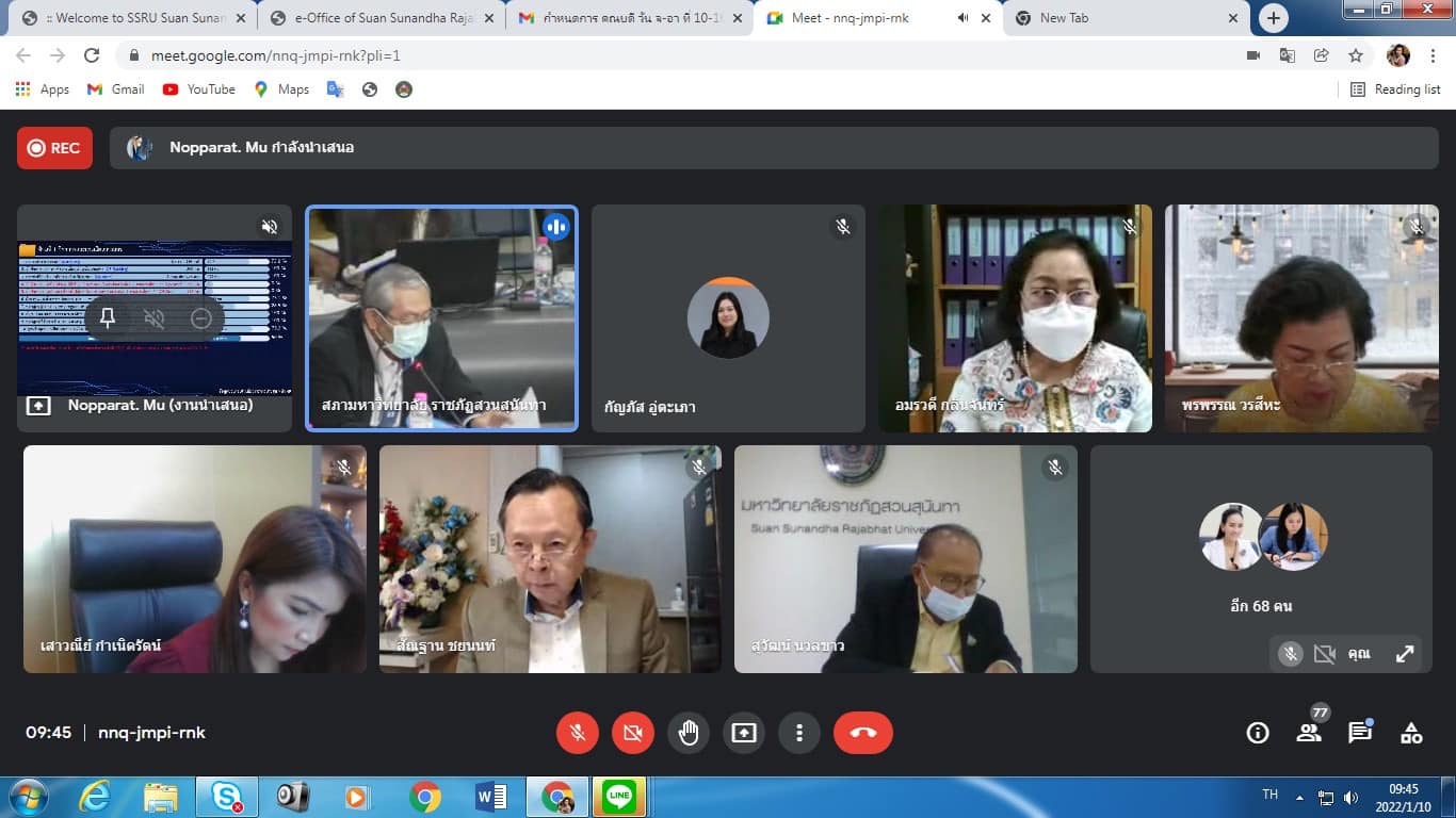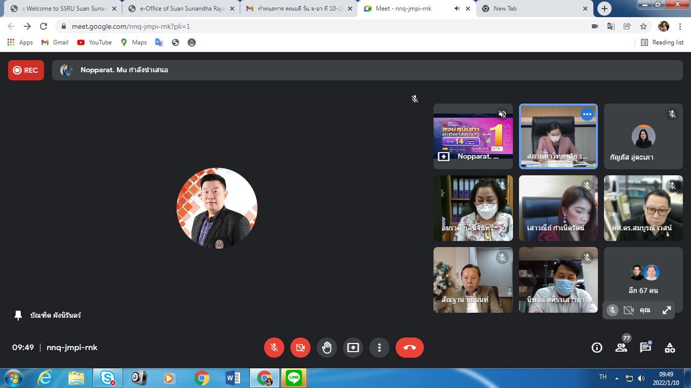 วันจันทร์ที่ ๑๐ มกราคม พุทธศักราช ๒๕๖๕ เวลา ๐๙.๓๐ น. รองศาสตราจารย์ดร.บัณฑิต ผังนิรันดร์ คณบดีวิทยาลัยนวัตกรรมและการจัดการ เข้าร่วมประชุมคณะกรรมการบริหารมหาวิทยาลัยราชภัฏสวนสุนันทา ครั้งที่ ๑/๒๕๖๕ โดยประชุมผ่านระบบออนไลน์