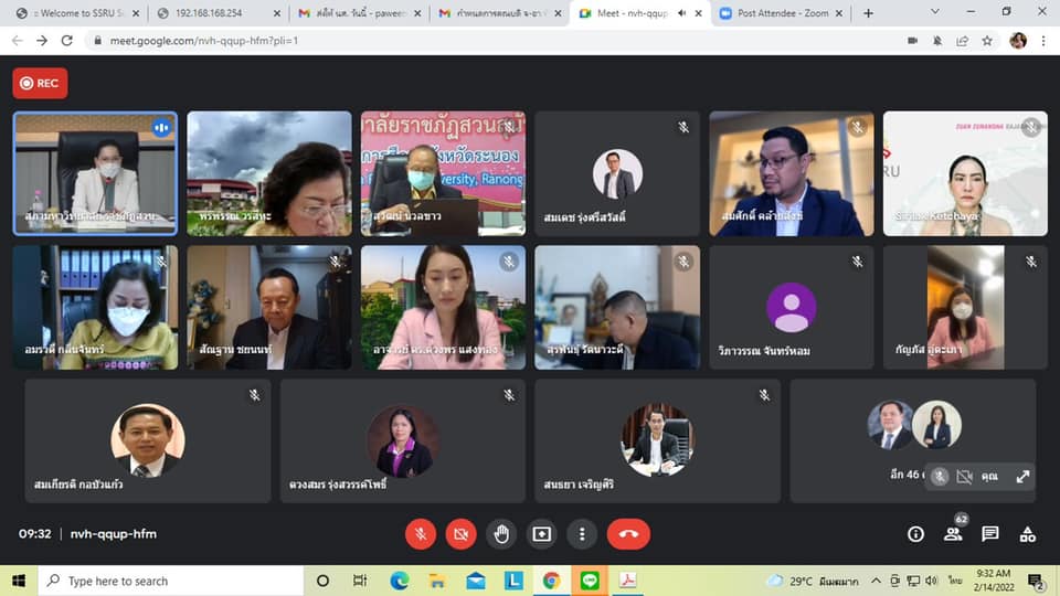 วันจันทร์ที่ 14 กุมภาพันธ์ พุทธศักราช 2565 เวลา 09.30 น. รองศาสตราจารย์ดร.บัณฑิต ผังนิรันดร์ คณบดีวิทยาลัยนวัตกรรมและการจัดการ เข้าร่วมประชุมคณะกรรมการบริหารมหาวิทยาลัยราชภัฏสวนสุนันทา ครั้งที่ 2/2565 โดยมี รองศาสตราจารย์ ดร.ชุติกาญจน์ ศรีวิบูลย์ อธิการบดี เป็นประธานการประชุม ณ ห้องประชุมสภามหาวิทยาลัยราชภัฏสวนสุนันทา อาคาร 31 ชั้น 5